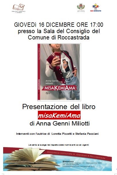 La biblioteca comunale Antonio Gamberi organizza per giovedì 16 dicembre alle ore 17.00, presso la sala del Consiglio del Comune di Roccastrada, la presentazione del libro di Anna Genni Miliotti dal titolo “Misakemiama”, edizioni Effigi.