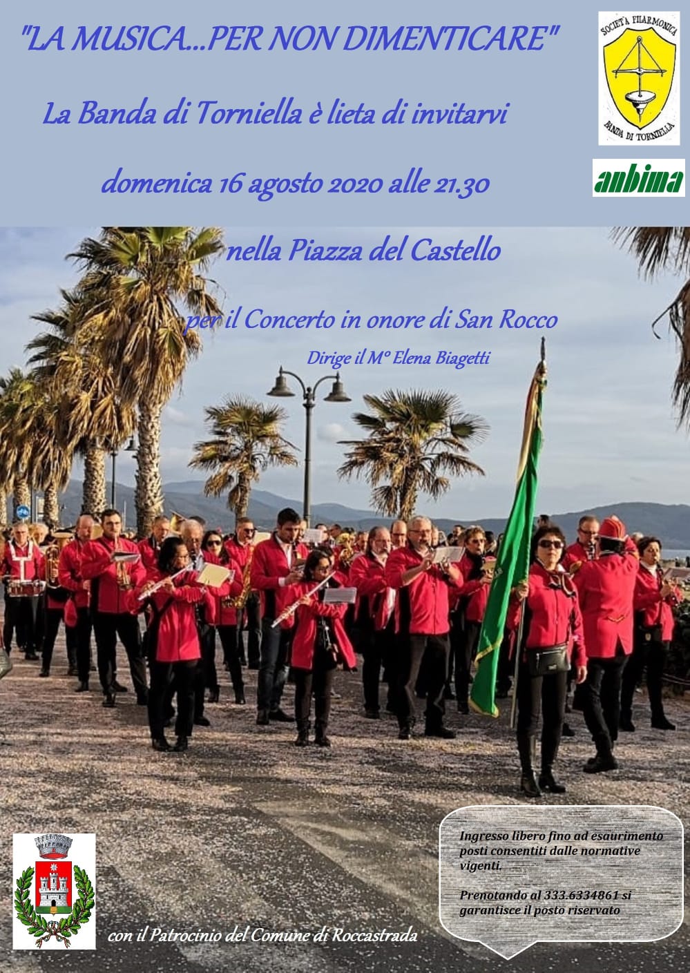 La banda di Torniella si esibisce domenica 16 agosto alle 21.30 nella piazza del Castello a Torniella, nel tradizionale concerto in onore di San Rocco.