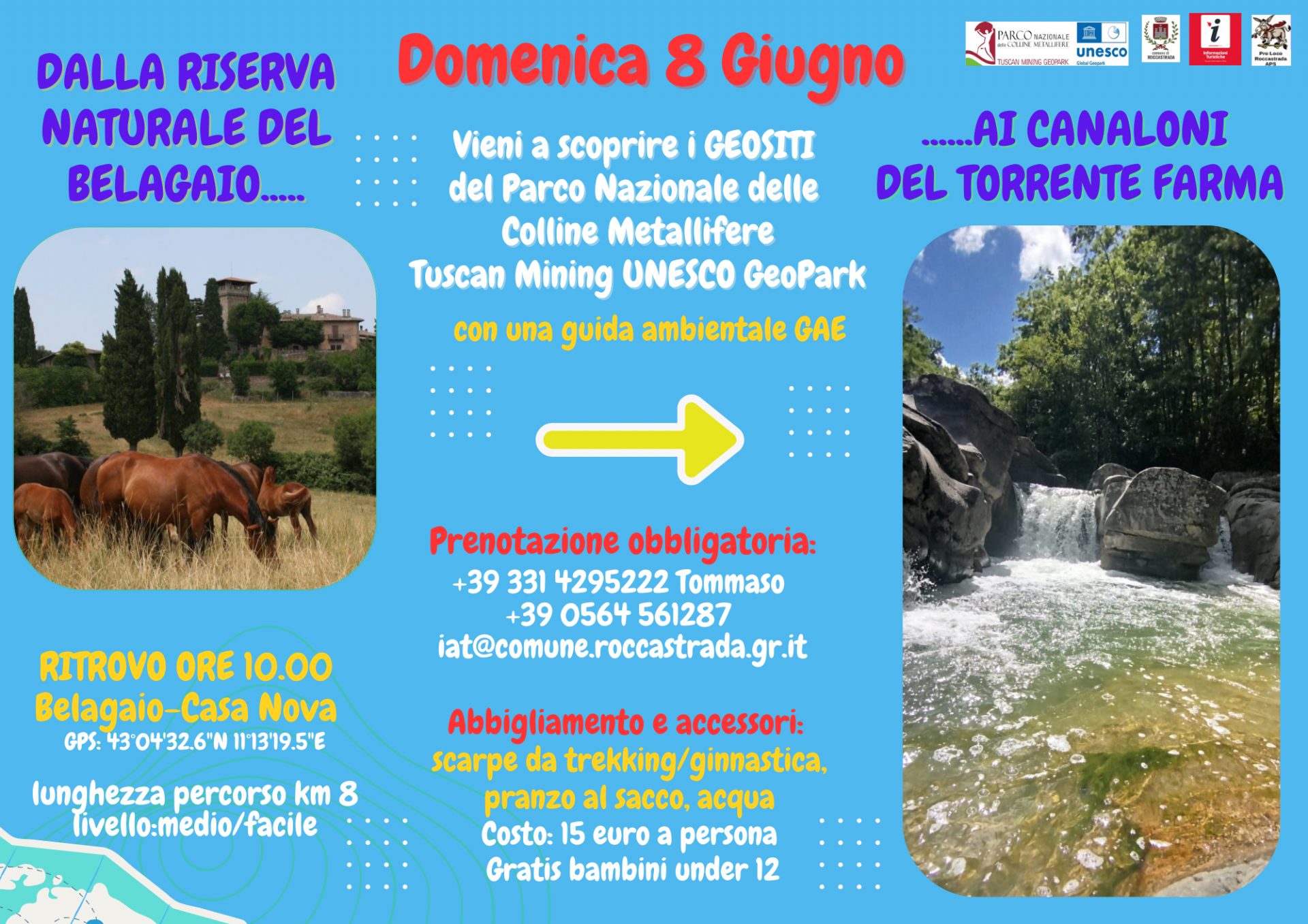 L'ufficio informazioni e accoglienza turistica organizza per il giorno domenica 8 giugno 2025, una escursione dalla riserva naturale del Belagaio ai Canaloni del torrente Farma, nei Geositi del Parco Nazionale delle Colline Metallifere Tuscan Mining UNESCO Geopark, accompagnati da una guida ambientale GAE.