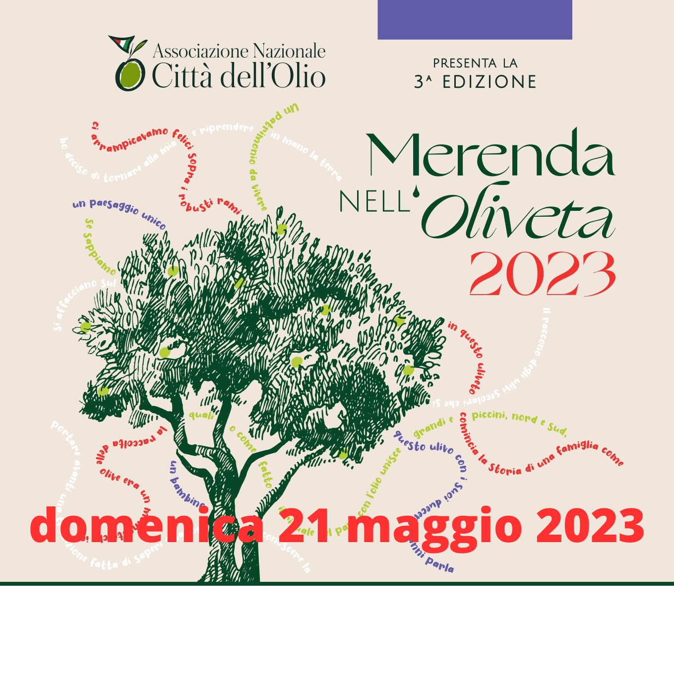 Nell’ambito di una rinnovata strategia finalizzata alla promozione delle tipicità del territorio, dopo l’esperienza dello scorso autunno con la manifestazione “Camminata tra gli olivi” tenutasi ad ottobre, Roccastrada aderisce con una propria proposta alla 3° edizione della “Merenda nell’oliveta”, un evento organizzato a livello nazionale dall’Associazione Nazionale Città dell’Olio, associazione alla quale il nostro comune aderisce da molti anni.