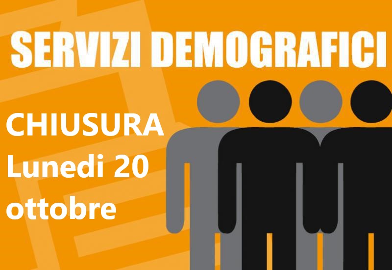 Si informa che, per consentire al personale di frequentare un corso di aggiornamento, l'Ufficio Servizi Demografici resterà chiuso nella giornata di lunedi 20 ottobre.