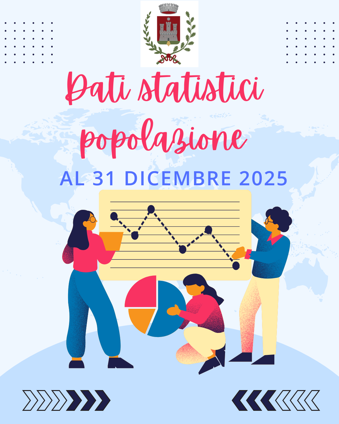 ALTRI DATI: Nell’anno 2025 sono stati inoltre celebrati complessivamente n. 28 matrimoni, di cui n. 25 in forma civile e n. 3 con rito religioso e 2 unioni civili; sono stati registrati 12 divorzi e 12 separazioni.
