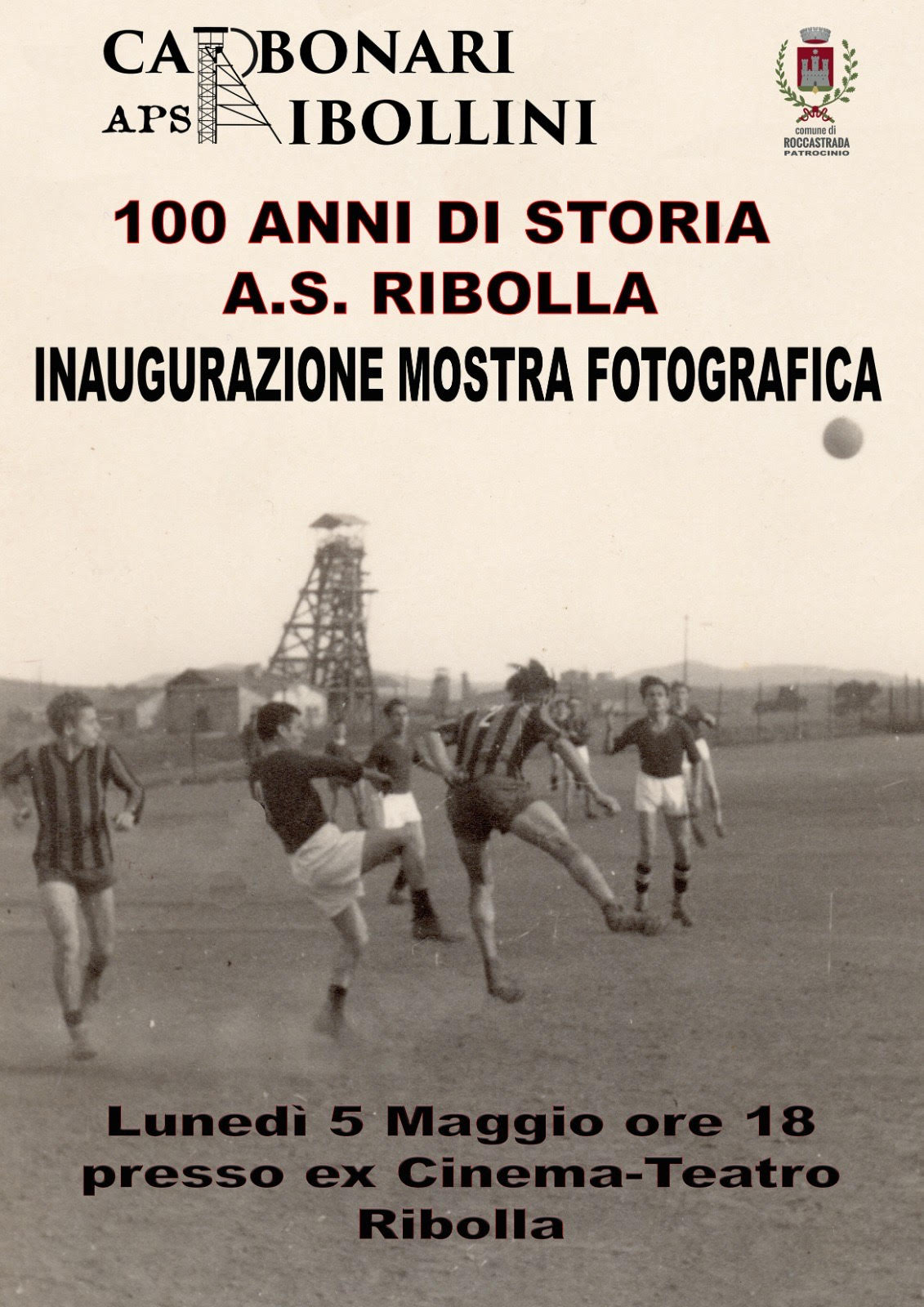 Un secolo di storia, sport e comunità in un racconto per immagini: 100 anni di storia A.S. Ribolla è il titolo della mostra fotografica che sarà inaugurata lunedì 5 maggio alle ore 18 presso l’ex Cinema di Ribolla, nell’ambito del cartellone della rassegna “La miniera a memoria”, promossa dal Comune di Roccastrada.