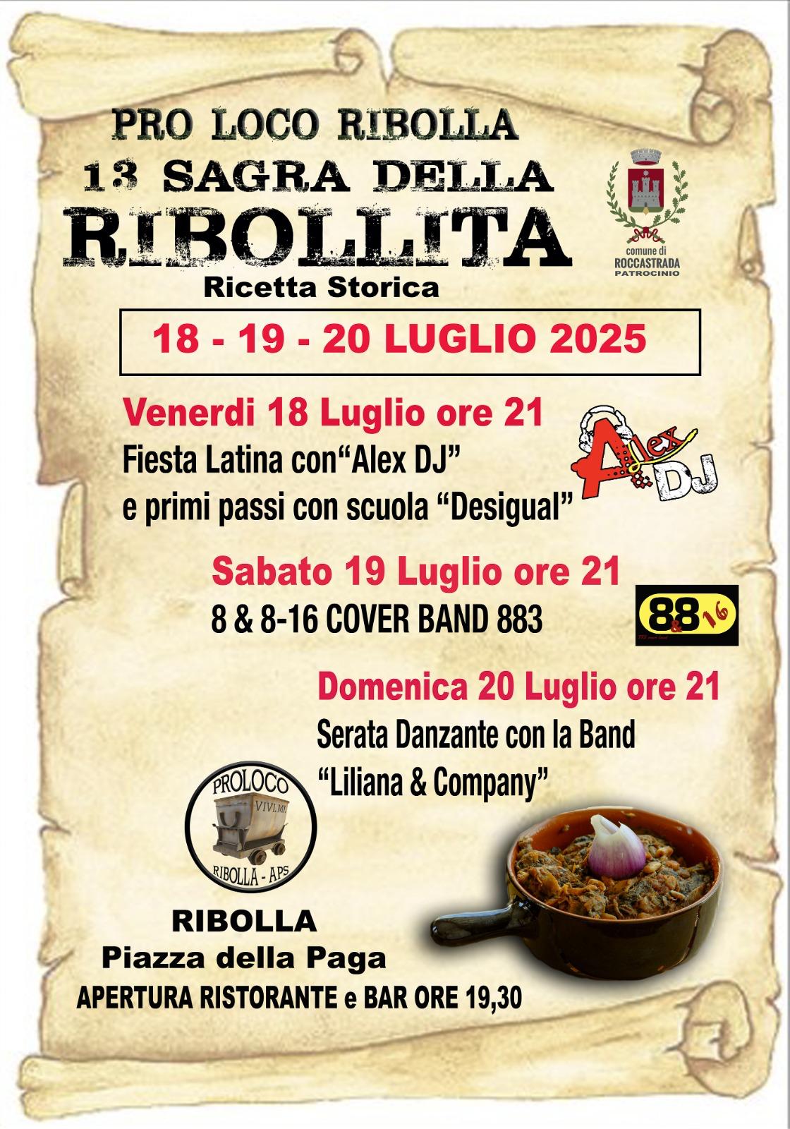 La Pro Loco di Ribolla organizza per i giorni 18 - 19 e 20 luglio, la 13° sagra della Ribollita (ricetta storica).