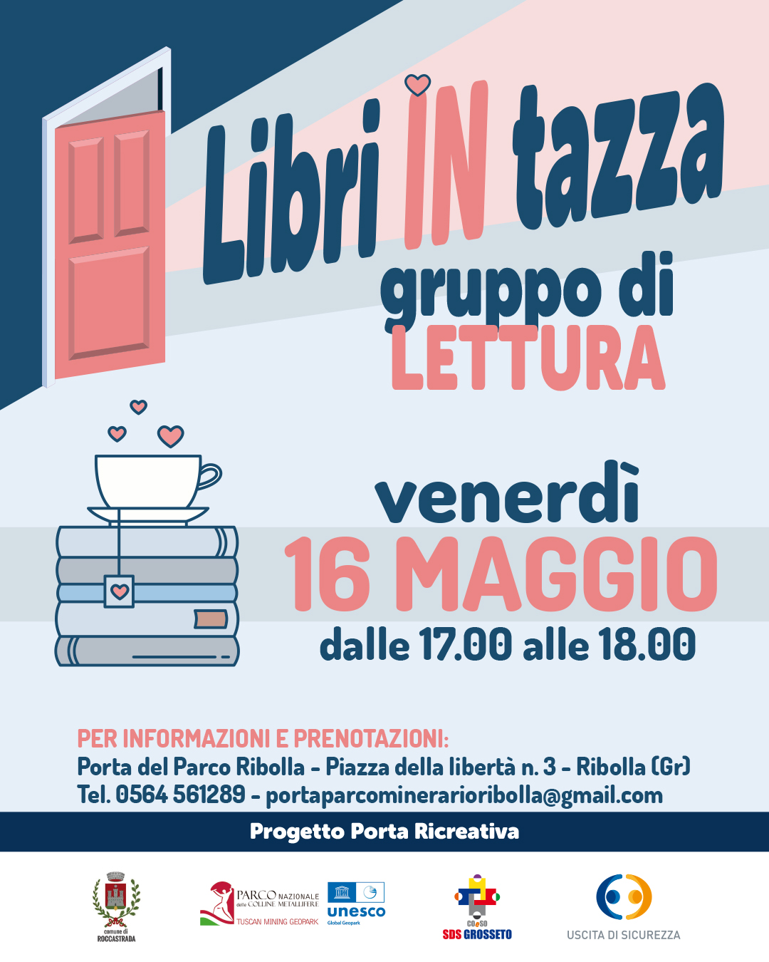Alla Porta del Parco di Ribolla, un progetto a cura della Porta Ricreativa, venerdi 16 maggio dalle ore 17.00 alle ore 18.00 "Libri in tazza" gruppo di lettura per adulti.