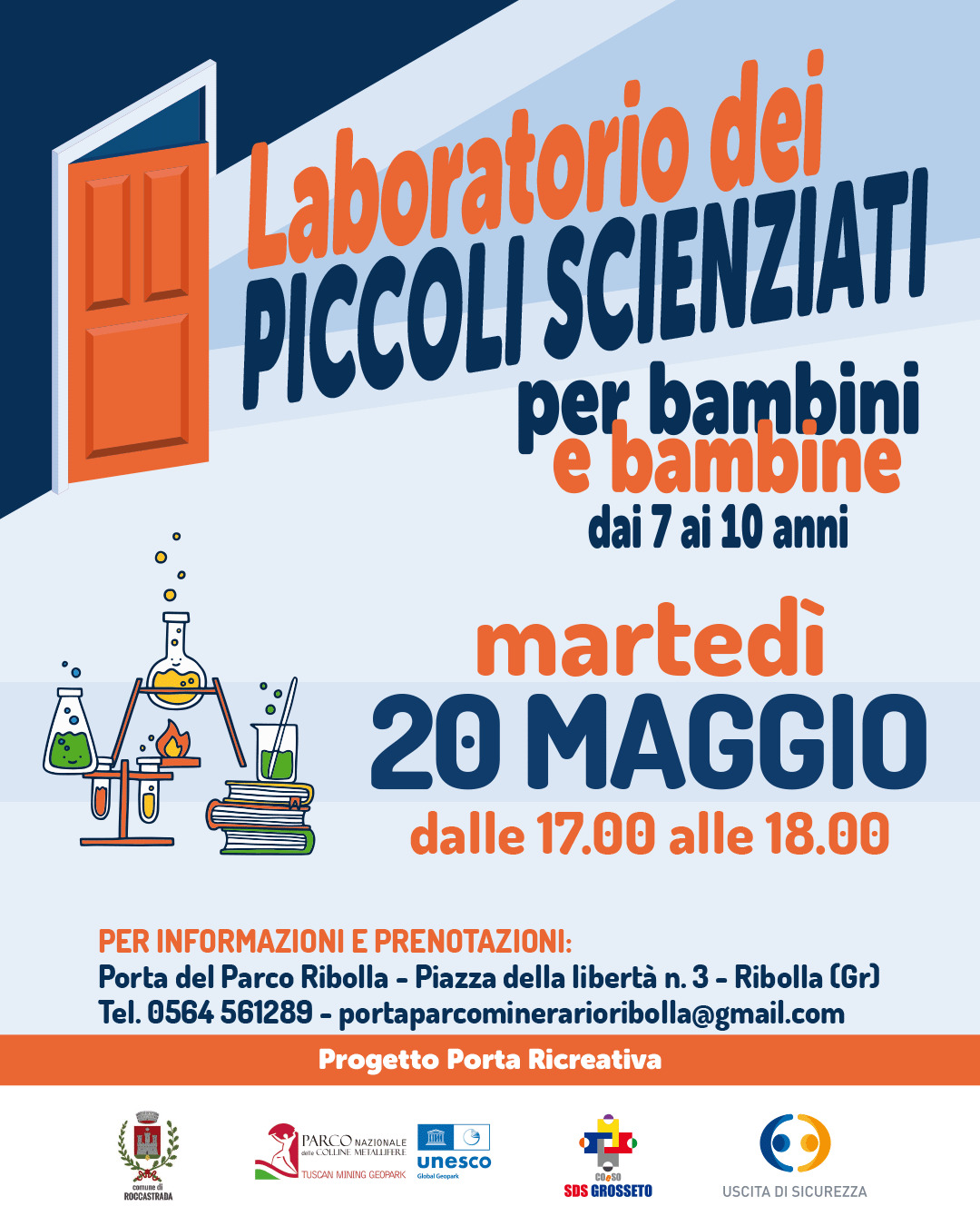 Alla Porta del Parco di Ribolla, martedi 20 maggio dalle ore 17.00 alle ore 18.00 un progetto a cura della Porta Ricreativa "Laboratorio dei piccoli scienziati" per bambini e bambine dai 7 ai 10 anni di età.