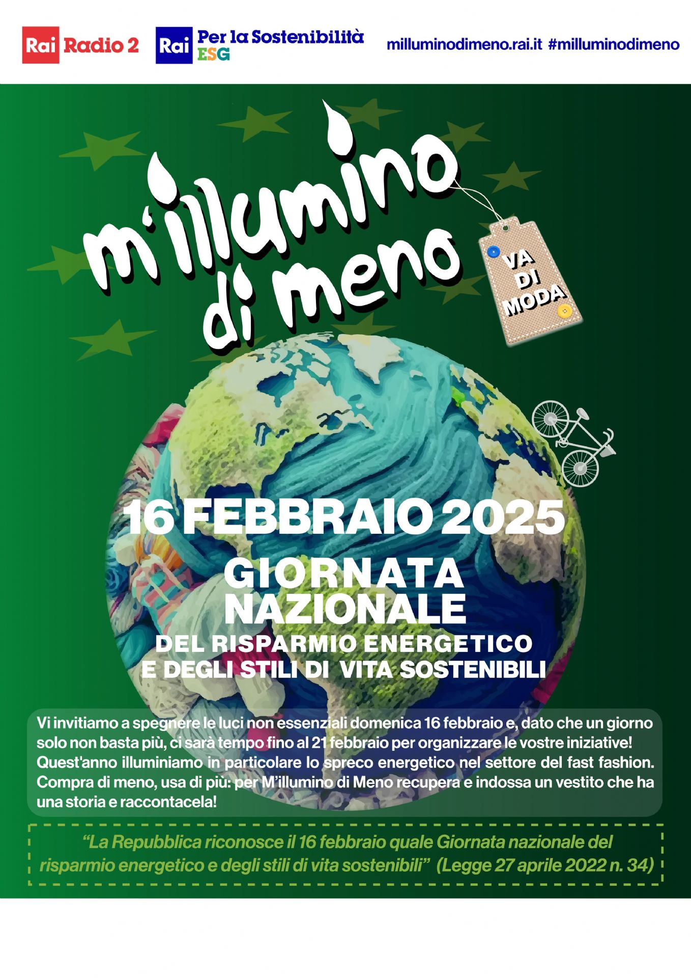La Giornata Nazionale del Risparmio Energetico e degli Stili di Vita Sostenibili è stata istituita dal Parlamento con la Legge n. 34/2022.