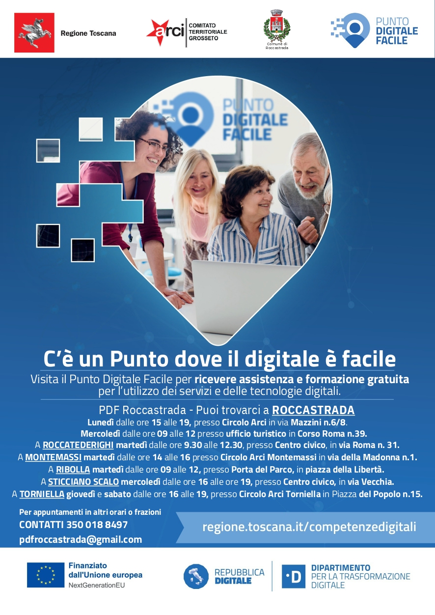 A partire dal 1 marzo, il punto di accesso ai servizi e alle tecnologie digitali fornito dal Comitato Territoriale ARCI di Grosseto con la collaborazione del Comune di Roccastrada, amplia il suo raggio di azione e raggiunge anche tutte le altre frazioni del territorio.