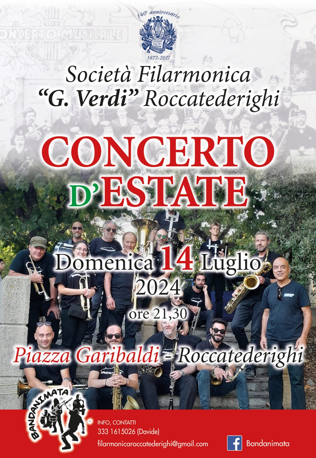 Domenica 14 luglio alle ore 21.30 in piazza Garibaldi a Roccatederighi la società filarmonica "G.Verdi" di Roccatederighi si esibirà nel Concerto d'Estate.