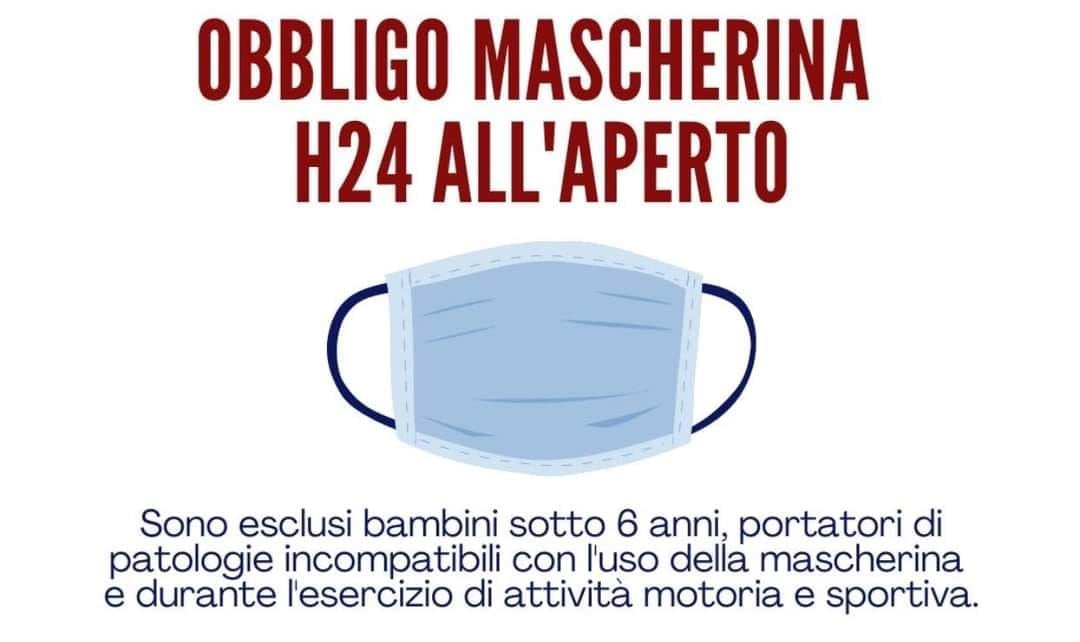 ✔ No mascherina: all’aperto in luogo isolato con persone conviventi, nelle abitazioni private e durante l’attività sportiva. Esclusi da obbligo mascherina i bambini sotto i 6 anni e i soggetti con patologie o disabilità incompatibili con l’uso della mascherina.