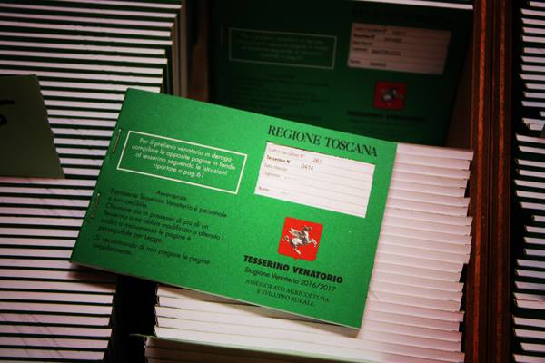 - tesserino venatorio dell'annata precedente o ricevuta di consegna.