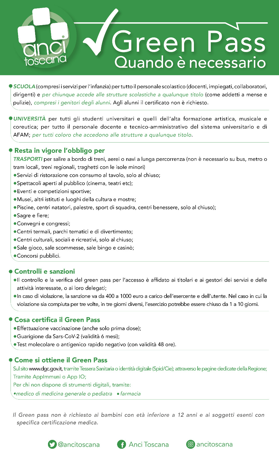 La scheda aggiornata di Anci Toscana sul Green Pass per una migliore lettura delle ultime disposizioni, anche su Scuola e Università.