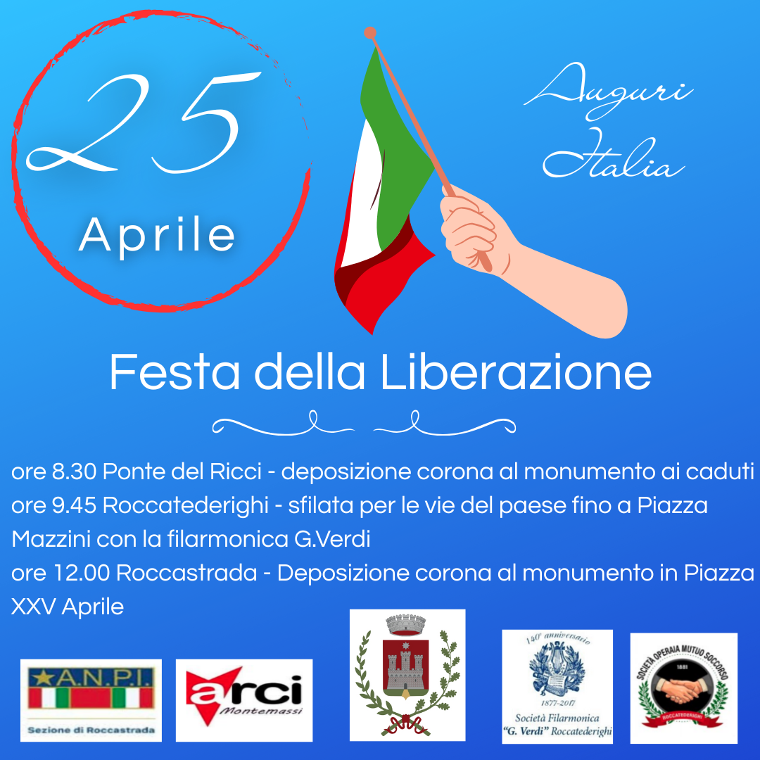 ➡️ore 9.45 Roccatederighi: sfilata per le vie del paese con la presenza della Filarmonica G.Verdi fino a Piazza Mazzini ove ci terranno letture ed interventi vari