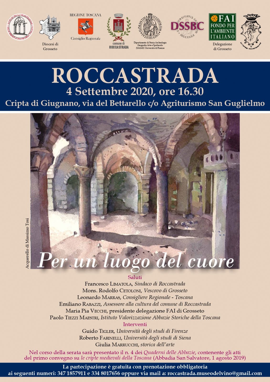 ai seguenti numeri: 347 1857911 e 334 8017656 oppure via mail a: roccastrada.museodelvino@gmail.com