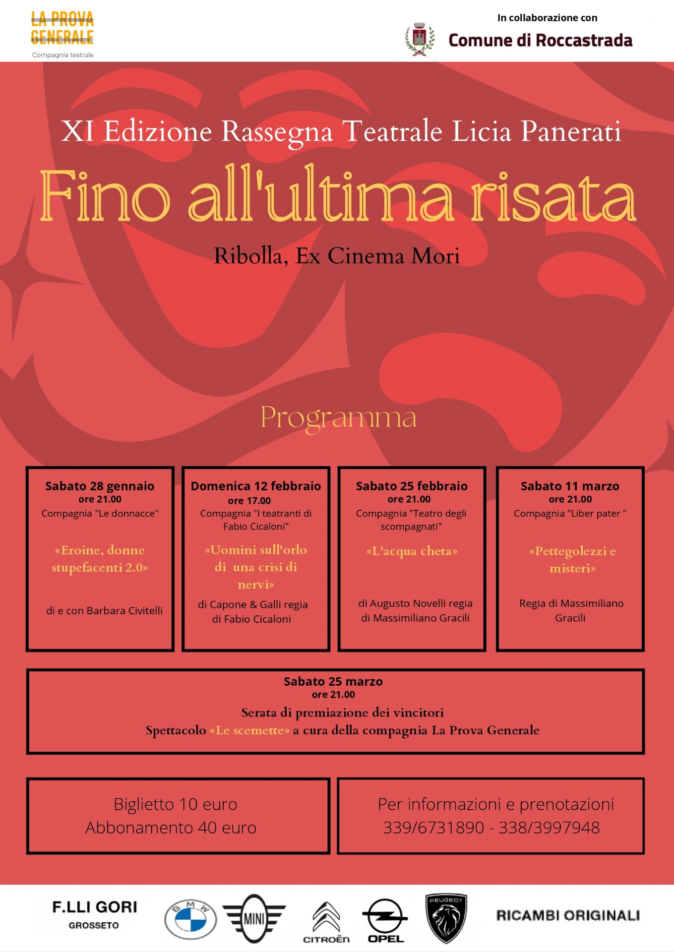 La compagnia teatrale "La prova generale" con il patrocinio del Comune di Roccastrada organizza la XI edizione della rassegna teatrale Licia Panerati presso l'ex cinema Mori di Ribolla.