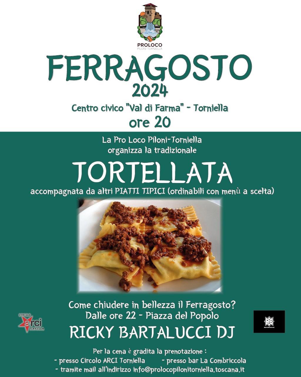 La pro loco Piloni - Torniella organizza per il giorno di Ferragosto, alle ore 20,00 presso il Centro Civico "Val di Farma" la tradizionale tortellata, accompagnata da altri piatti tipici della tradizione.