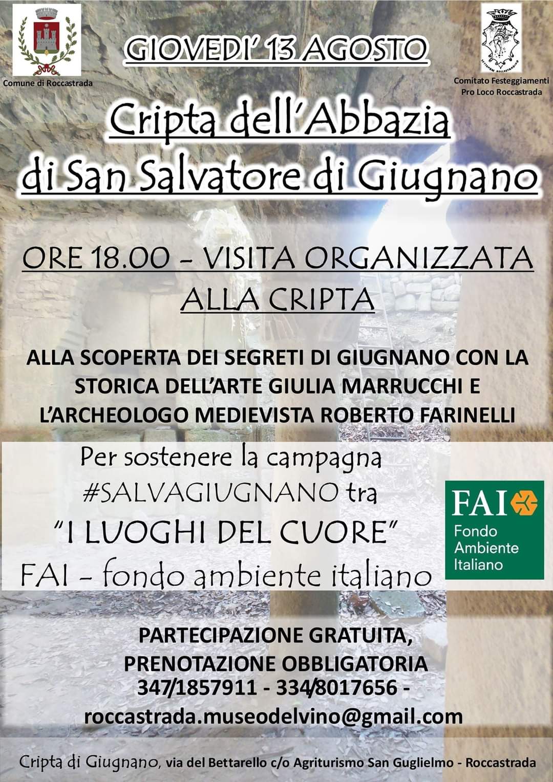 Di seguito il link per votare online “I luoghi del cuore”: https://www.fondoambiente.it/luoghi/cripta-dell-abbazia-giugnano?ldc