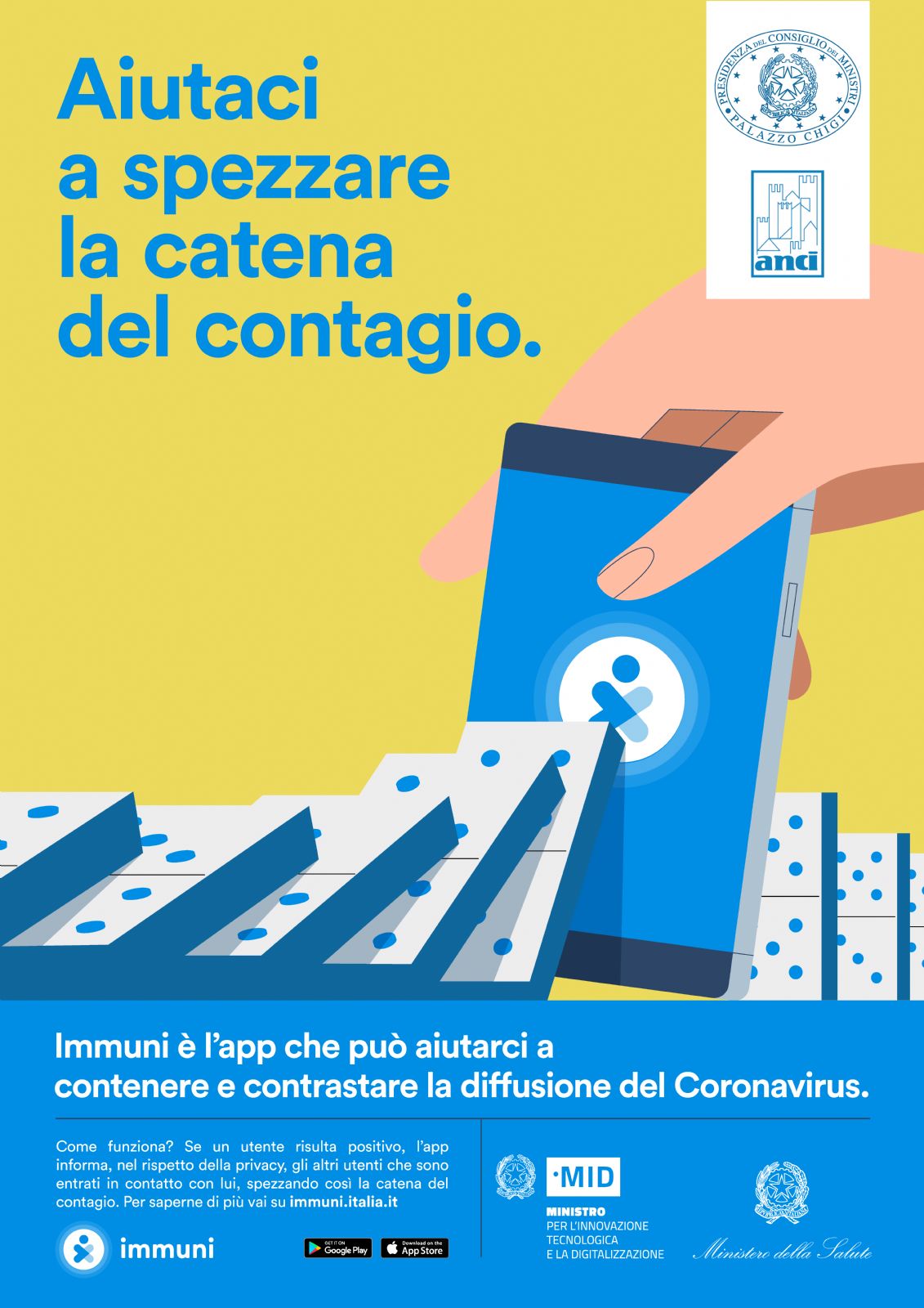 L’Anci collabora alla campagna di comunicazione promossa dalla Presidenza del Consiglio dei ministri per promuovere la app Immuni, creata per aiutare a combattere le epidemie, a partire da quella del COVID-19.