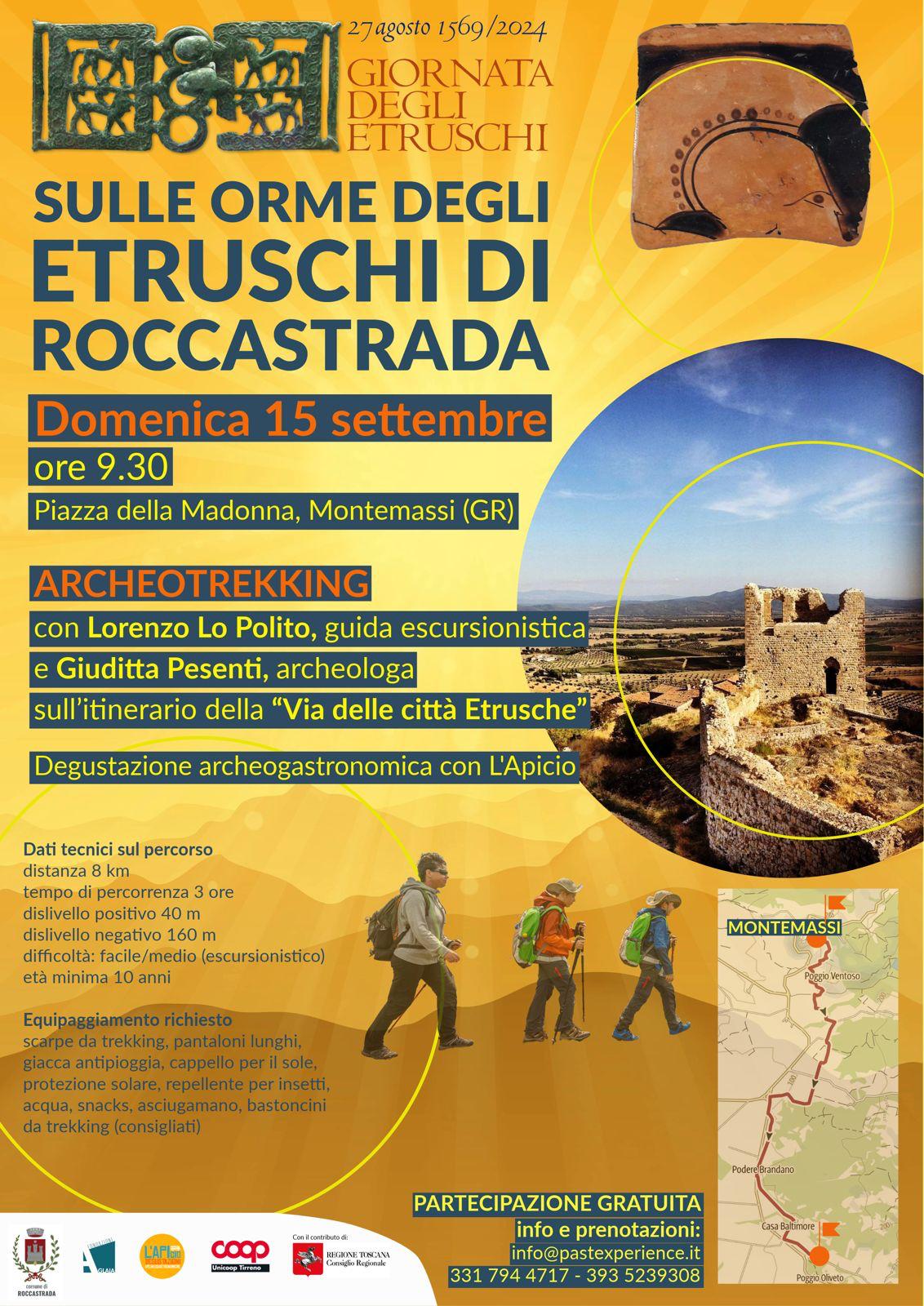 Nell’ambito delle azioni di promozione, tutela e valorizzazione del proprio patrimonio storico, artistico, ambientale e archeologico il Comune di Roccastrada ha recentemente partecipato ad un bando della Regione Toscana sulle Giornate degli Etruschi 2024 con un proprio progetto dal titolo “Sulle orme degli Etruschi di Roccastrada” finalizzato a favorire iniziative rivolte a celebrare la civiltà, la cultura ed il patrimonio etrusco della Toscana.