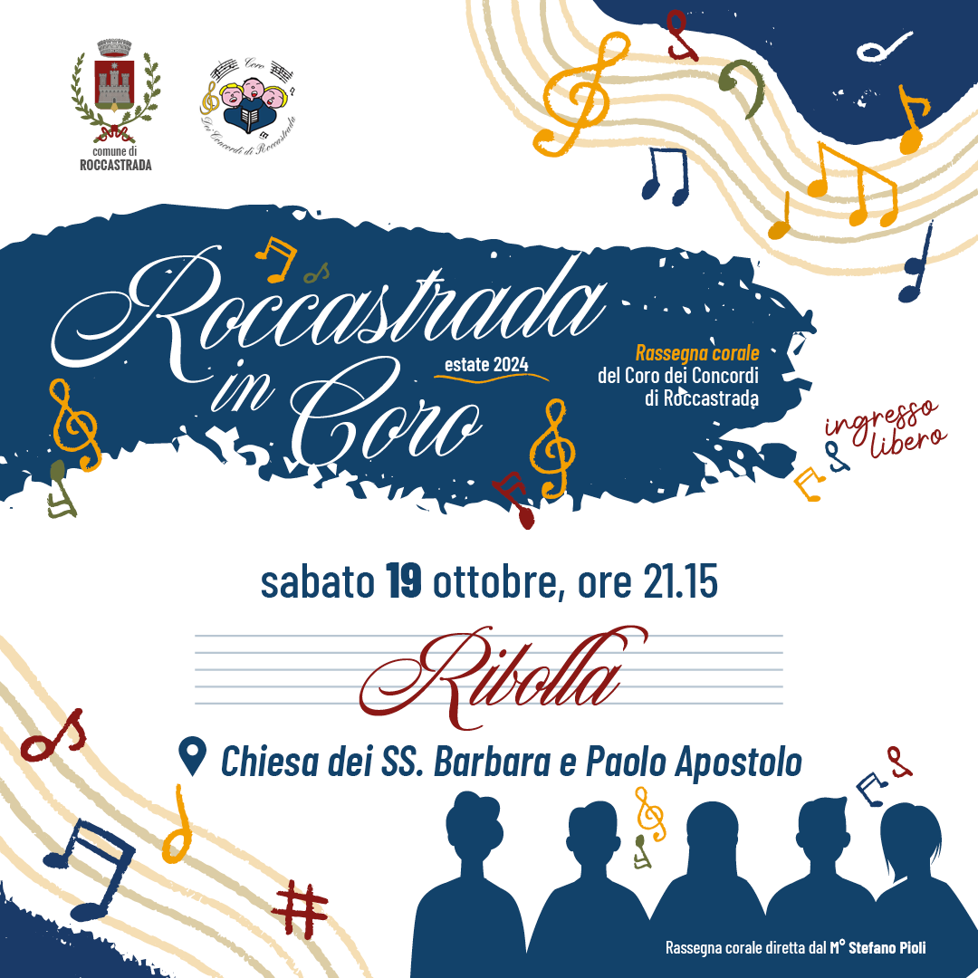 Sabato 19 ottobre alle 21.15 presso la Chiesa dei SS. Barbara e Paolo Apostolo di Ribolla, ultimo appuntamento della rassegna organizzata a cura dell’assessorato alla cultura del Comune di Roccastrada che vede protagonista il Coro dei Concordi di Roccastrada che durante l'estate si è già esibito in altre tre occasioni a Sassofortino, Montemassi e Sticciano. La rassegna si chiuderà proprio sabato prossimo nella frazione di Ribolla.