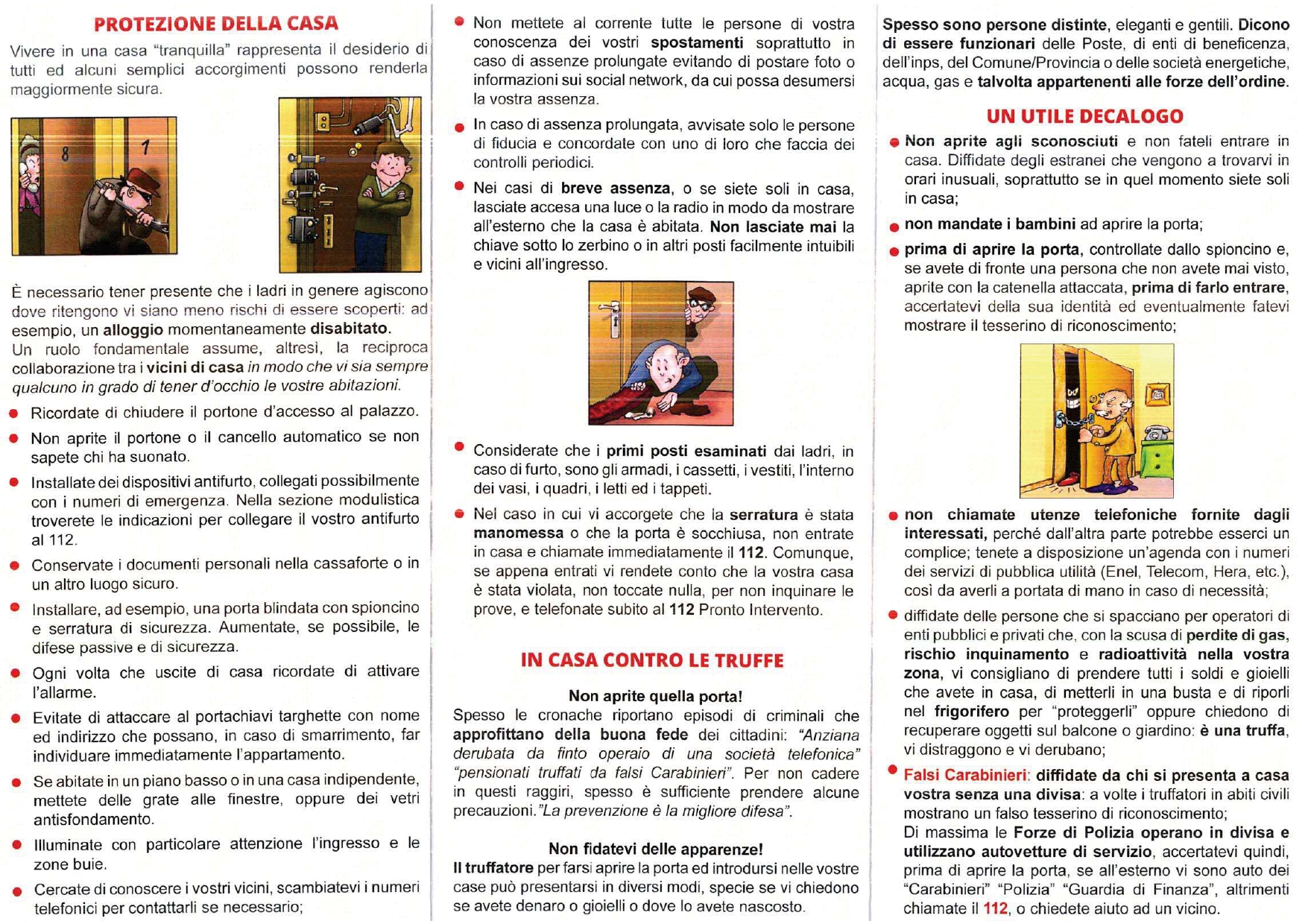 In considerazione dell'aumento dei tentativi di truffa, furti e raggiri alle persone anziani o deboli che si stanno verificando con sempre più frequenza nell'ultimo periodo anche nelle nostre zone, la Legione Carabinieri "Toscana" ha diffuso un utile vademecum per cercare di scongiurare questo tipo di eventi.