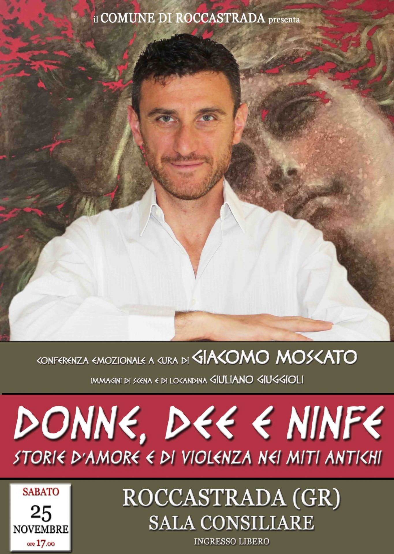 Comune di Roccastrada in collaborazione con la Commissione per la Parità e le Pari Opportunità comunale ed alcune associazioni del territorio, in occasione della "Giornata internazionale contro la violenza sulle donne ", presentano sabato 25 novembre alle ore 17,00 nella sala consiliare, una conferenza emozionale a cura di Giacomo Moscato dal titolo “Donne, dee e ninfe - Storie d’amore e di violenza nei miti antichi”.