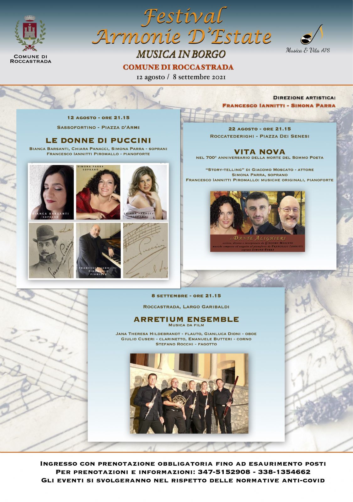 Comune di Roccastrada in collaborazione con l'Associazione "Musica & Vita A.P.S." organizza tre serate musicali nelle piazze di Sassofortino, Roccatederighi e Roccastrada.