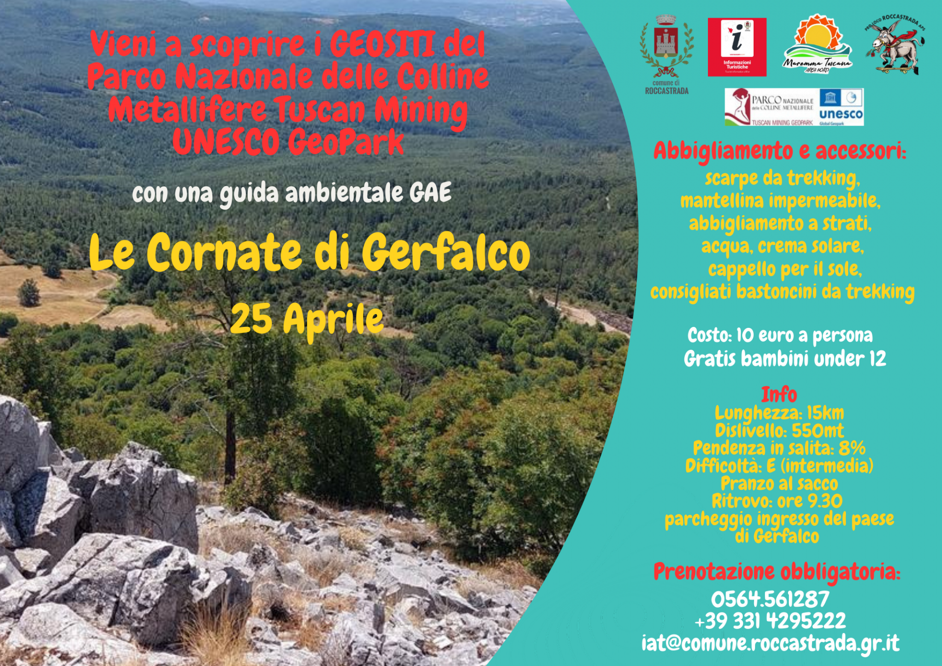 L'ufficio informazioni e accoglienza turistica organizza per il giorno 25 aprile 2025 una escursione per scoprire i Geositi del Parco Nazionale delle Colline Metallifere, accompagnati da una guida ambientale GAE.