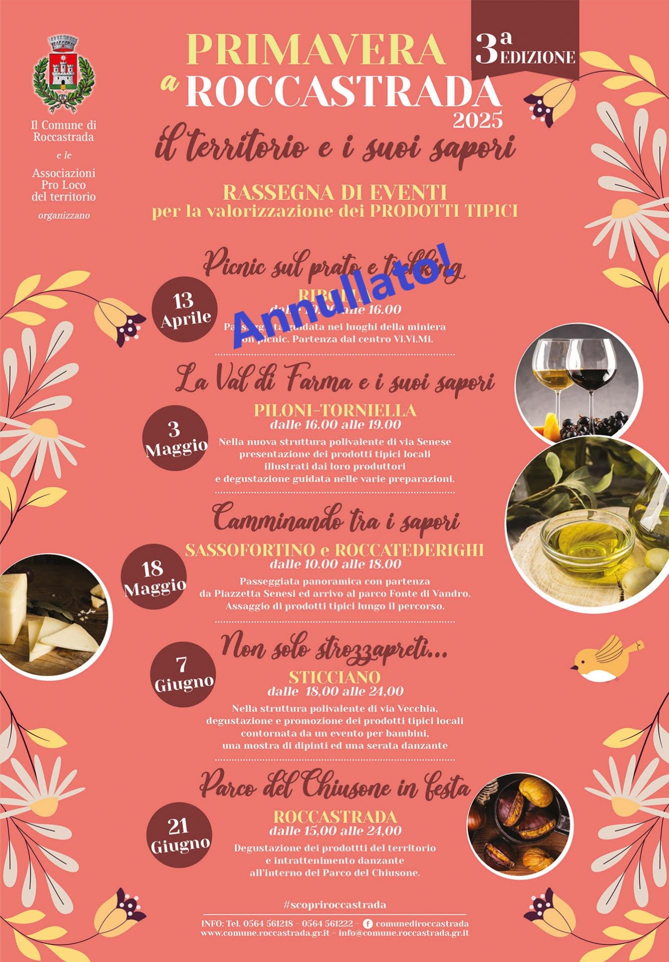 Con l’arrivo della primavera, a Roccastrada riprende la campagna di promozione del territorio e dei suoi prodotti tipici. “Primavera a Roccastrada: il territorio e i suoi sapori” è un calendario di iniziative di promozione programmato grazie alla collaborazione tra l’Amministrazione Comunale e le Associazioni Pro Loco del territorio, in un periodo dell’anno, la primavera, storicamente meno denso di eventi. E’ il frutto di un’idea nata due anni fa che quest’anno, dopo le prime positive esperienze del 2023 e 2024, raggiunge il traguardo della terza edizione.