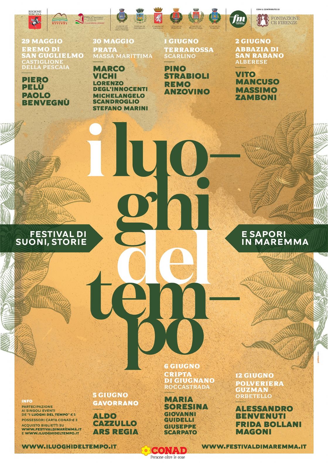 “Il Comune di Roccastrada che rappresento – queste le parole dell’assessore alla cultura del Comune di Roccastrada Emiliano Rabazzi - rinnova con piacere il proprio sostegno al festival “I luoghi del tempo” che si conferma, anno dopo anno, una manifestazione importante per riscoprire il territorio e luoghi poco conosciuti, spesso anche alle comunità locali. Il festival anima i luoghi che tocca attraverso storia, cultura, musica e arte, in compagnia di artisti, scrittori e musicisti di livello e permette a tutti noi di vivere in maniera nuova e diversa il ricco patrimonio storico e artistico della Maremma”.