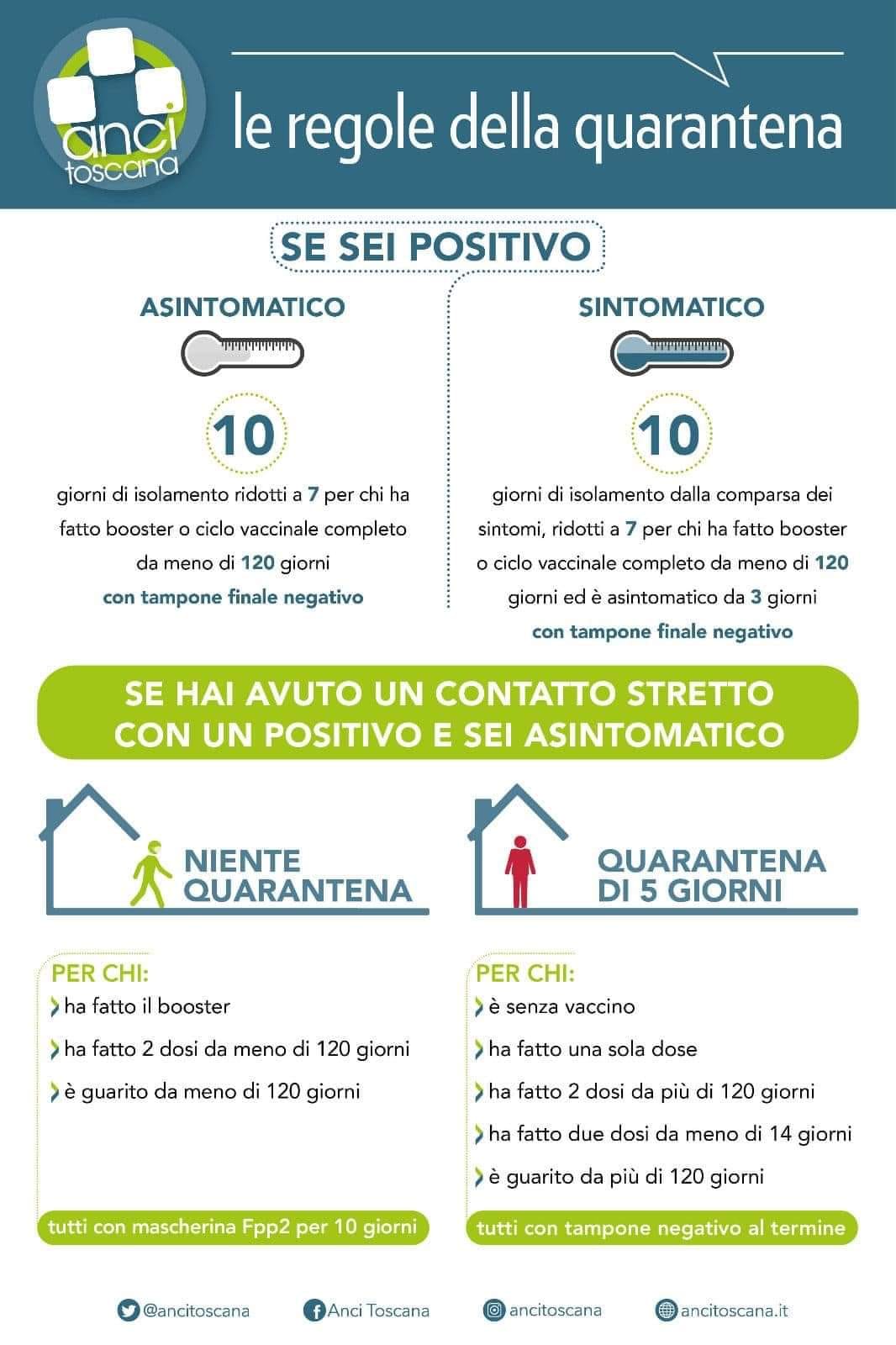 Ecco le regole relative alla quarantena in caso di positività al Covid-19 o di contatti stretti con positivi riassunti in una scheda dell'Anci