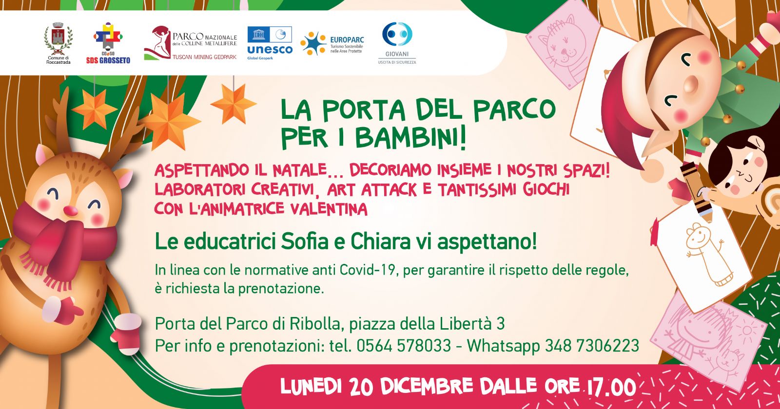 Lunedì prossimo 20 dicembre alle 17,00 si terrà l’iniziativa “Aspettando il Natale… decoriamo insieme la Porta del parco”: laboratori, art attack e tanti giochi per abbellire insieme ai bambini, in vista delle festività, i locali di Ribolla.