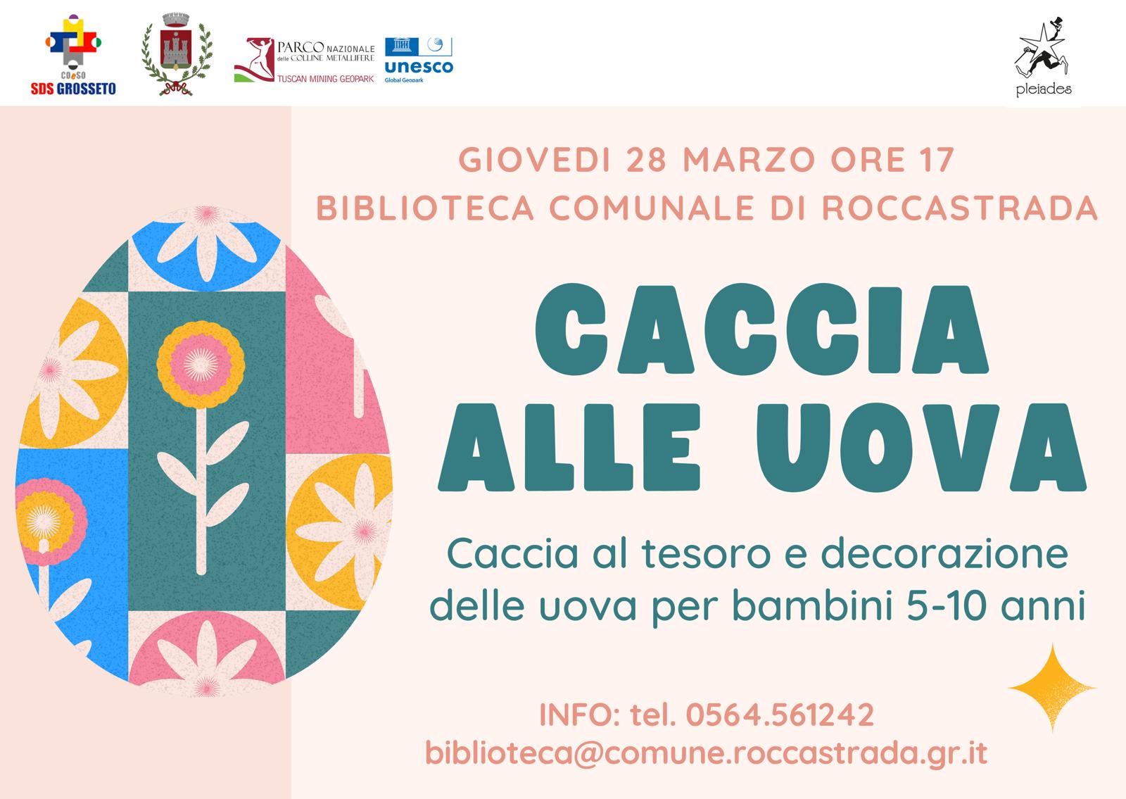 La Biblioteca Comunale A.Gamberi di Roccastrada organizza per il giorno giovedi 28 marzo alle ore 17.00 "Caccia alle uova" - Caccia al tesoro e decorazione delle uova per bambini dai 5 ai 10 anni.