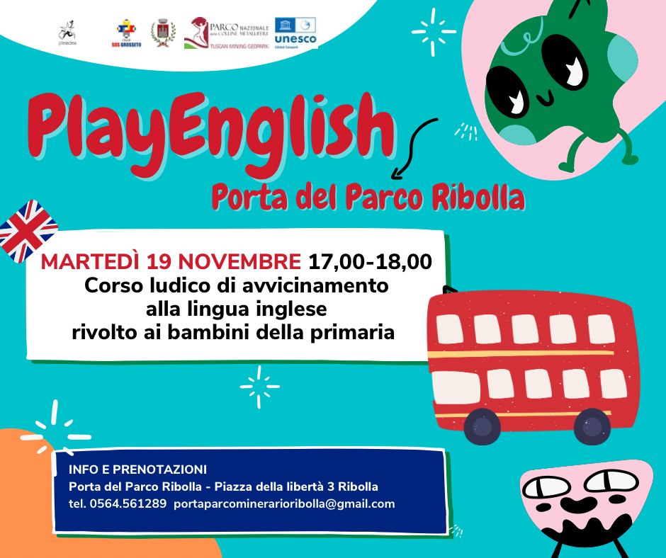 La Porta del Parco di Ribolla presenta martedi 19 novembre 2024 dalle ore 17.00 alle ore 18.00 "Play English", un corso ludico di avvicinamento alla lingua inglese rivolto ai bambini della primaria.