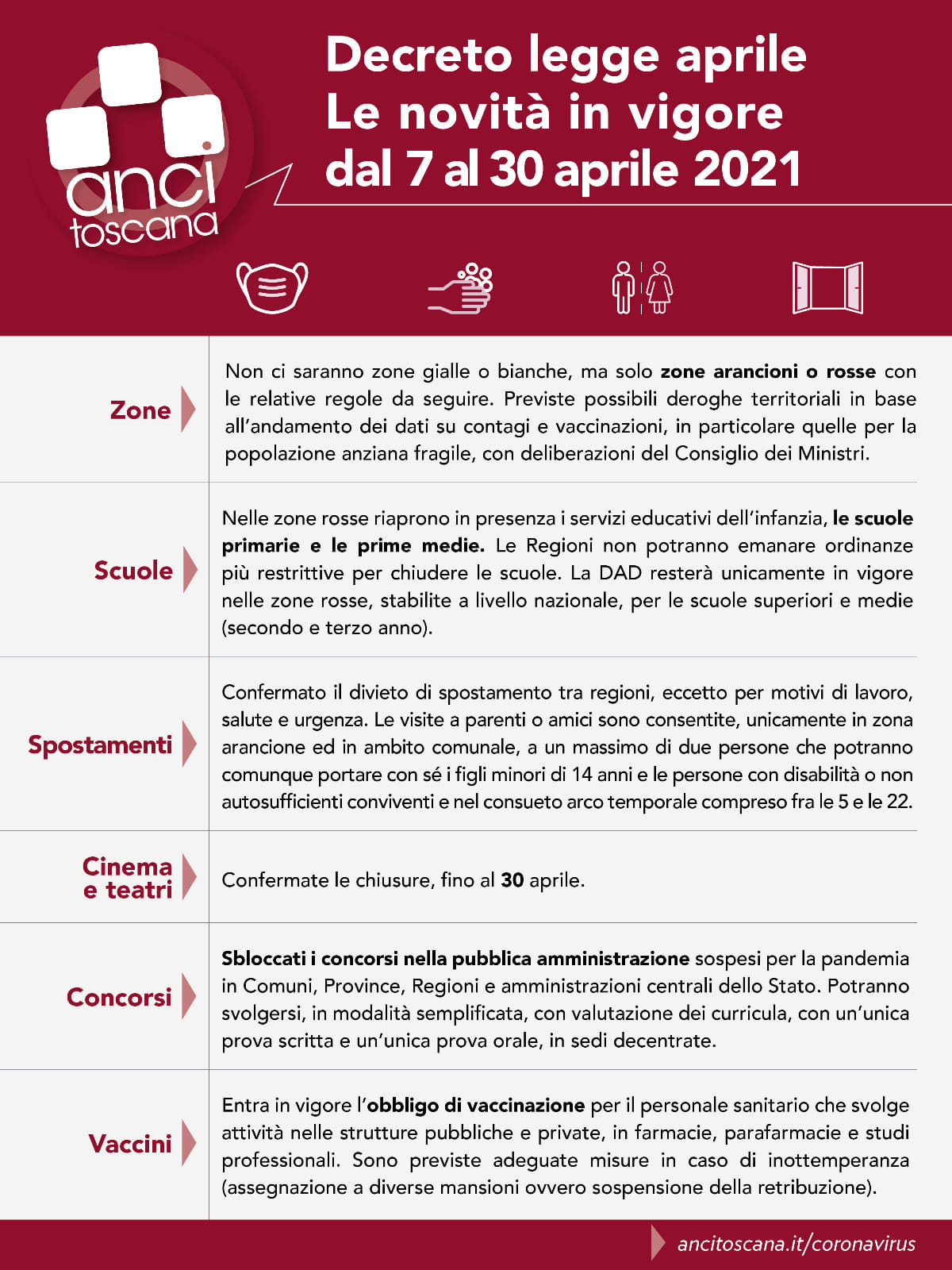 Ecco la scheda AnciToscana con le novità introdotte dal governo in vigore dal 7 al 30 aprile