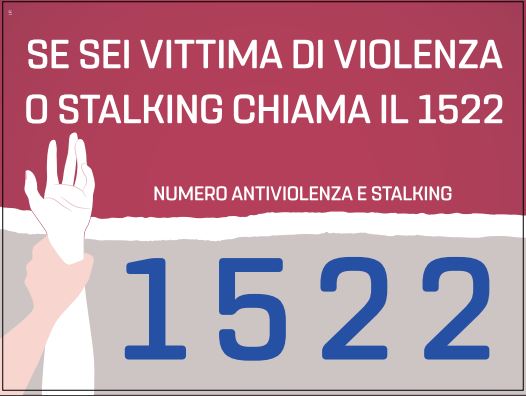 Il numero 1522 è un servizio pubblico promosso dalla Presidenza del Consiglio dei ministri – Dipartimento per le pari opportunità, allo scopo di contrastare la violenza di genere, è gratuito e attivo h24.