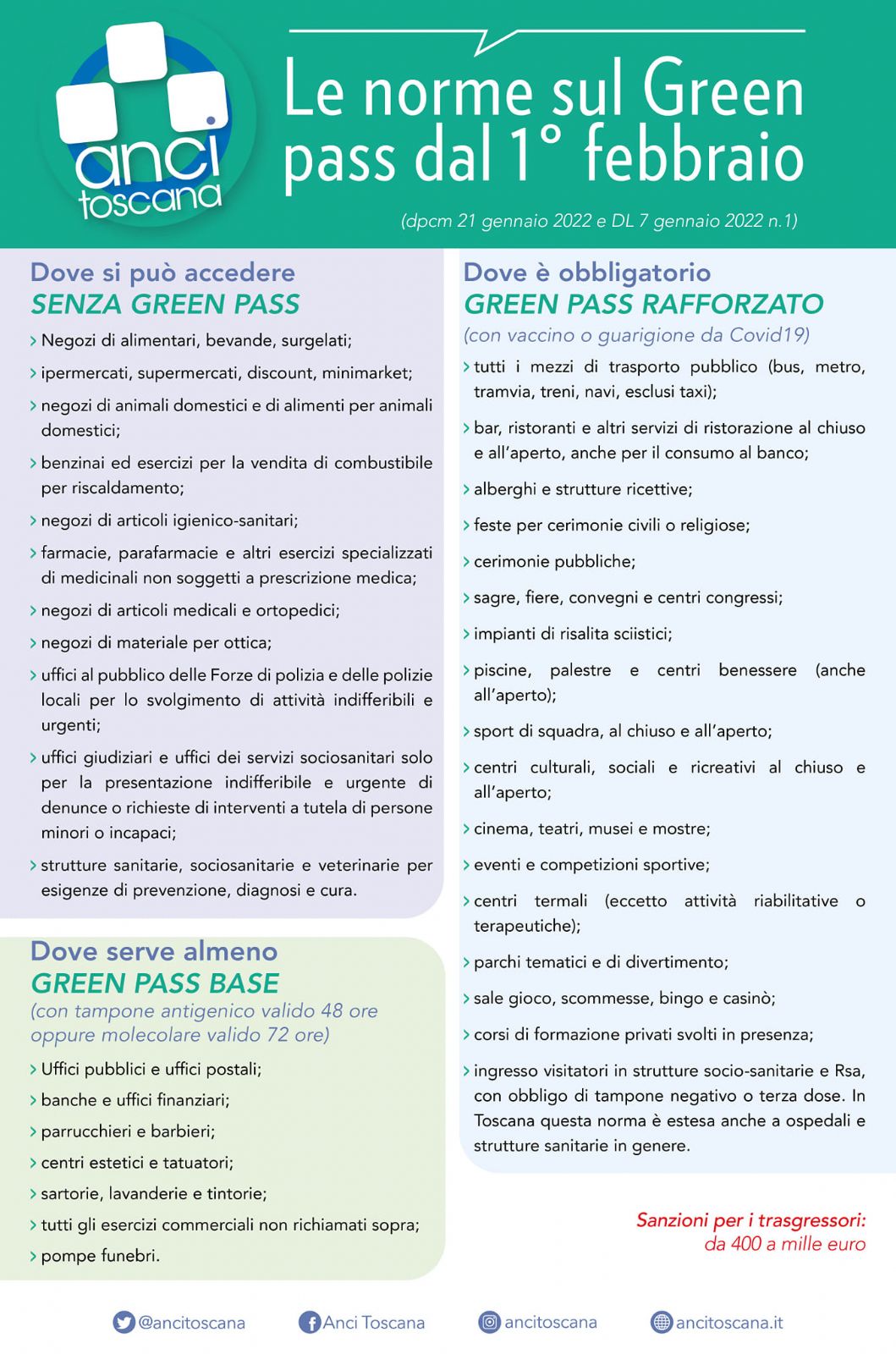 Ecco la scheda AnciToscana con le misure sul green pass in vigore da martedi 1 febbraio