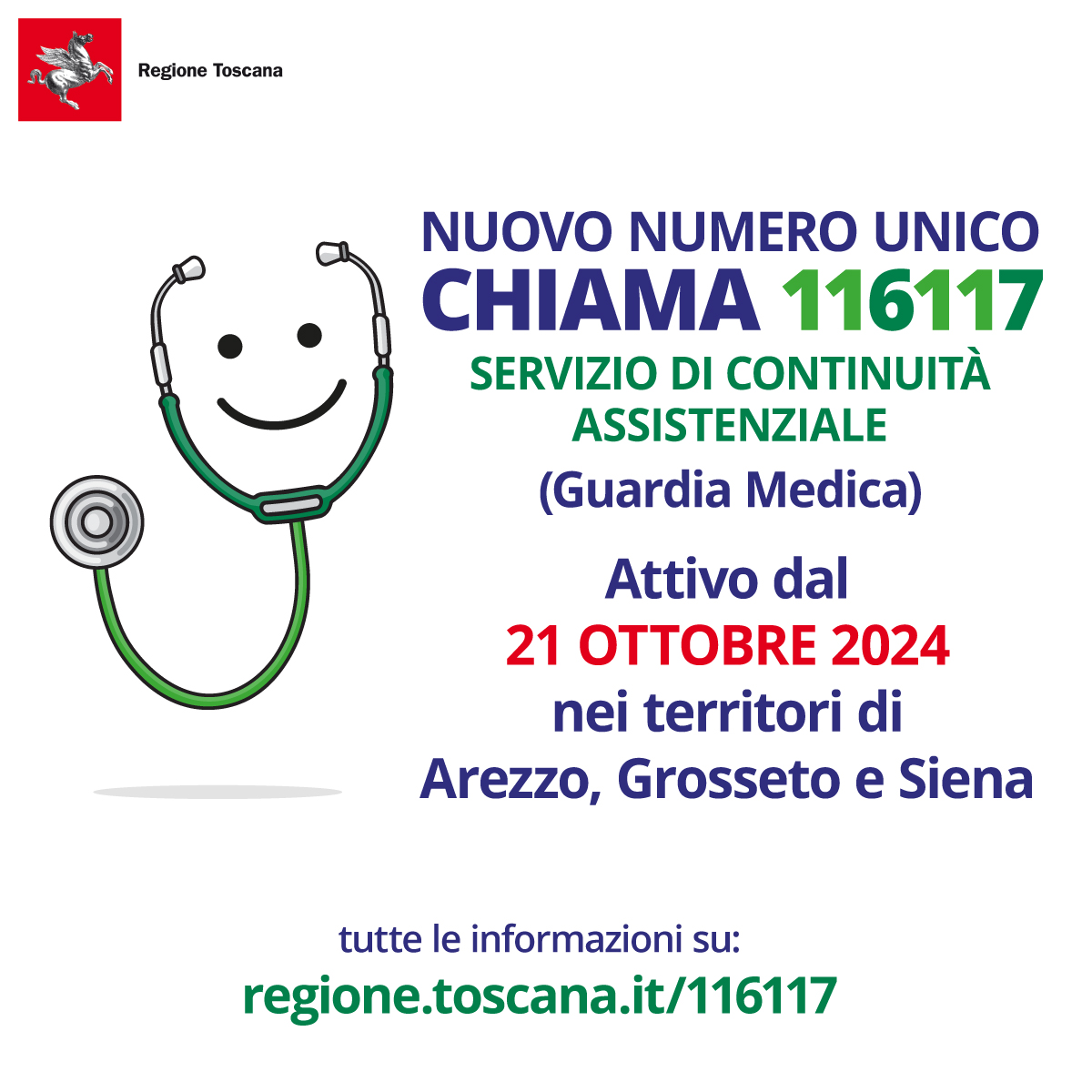 Dal 21 ottobre 2024 è attivo il nuovo numero unico europeo 116117 per le cure non urgenti che sarà anche l'unico riferimento per contattare la Guardia Medica.