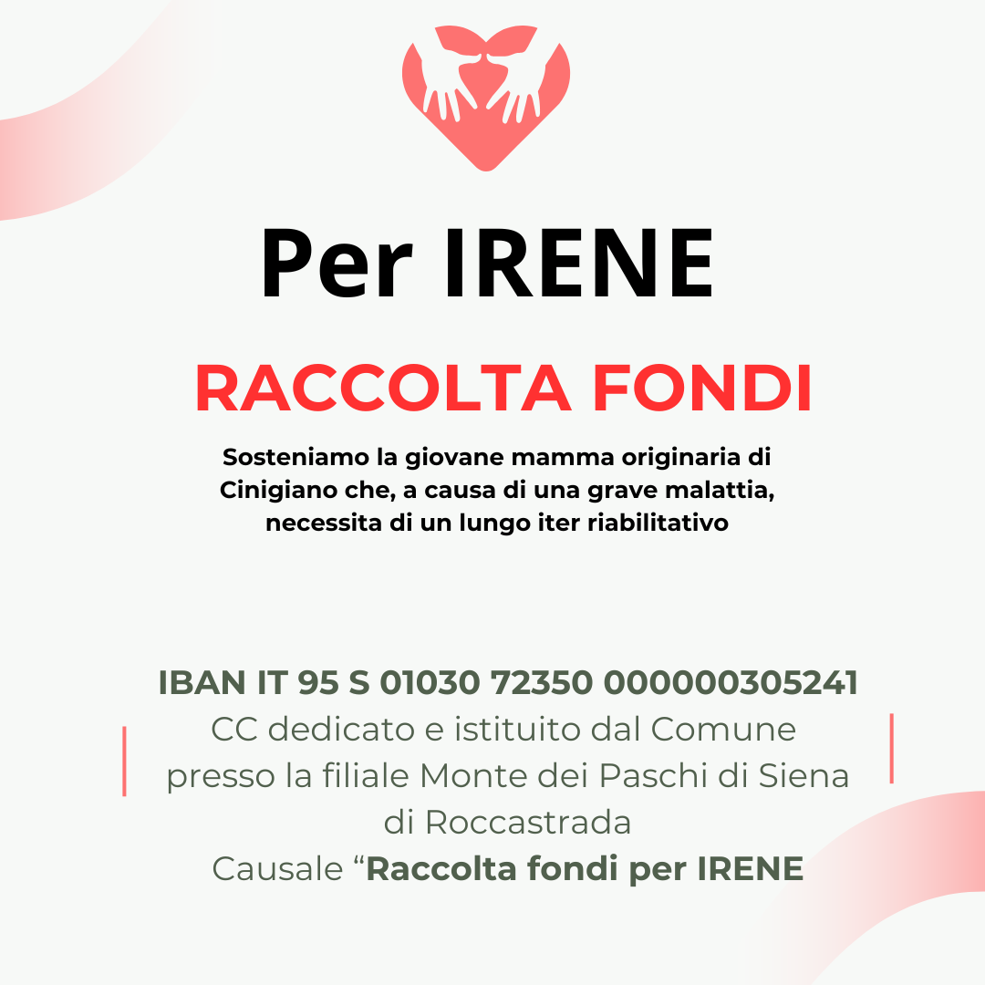 Inoltre l’Amministrazione Comunale ha aperto un conto dedicato presso la tesoreria per chi volesse fare una donazione con bonifico con il seguente IBAN: IT 95 S 01030 72350 000000305241 presso la filiale del Monte dei Paschi di Siena di Roccastrada riportando nella causale “Raccolta fondi per Irene”.